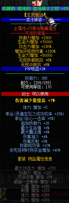 【混沌级别装备】 本服终极装备! 用卓越宝石砸到全属性+15后可激活变异属性。异常强大! |